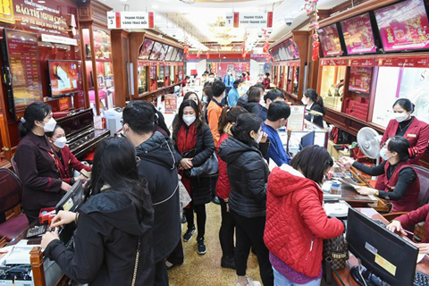 Người dân nườm nượp đi mua vàng trước ngày Vía Thần Tài. Ảnh: Quang Vinh