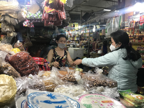 Mặt hàng thực phẩm khô chịu áp lực lớn từ việc tăng giá xăng khiến chi phí vận chuyển tăng thêm. (Trong ảnh: Khách mua thực phẩm khô tại chợ trung tâm Buôn Ma Thuột)