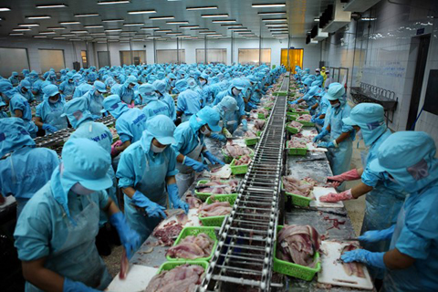Người lao động tại Công ty CP Thuỷ sản Hà Nội - Cần Thơ. Ảnh: Vũ Phong.