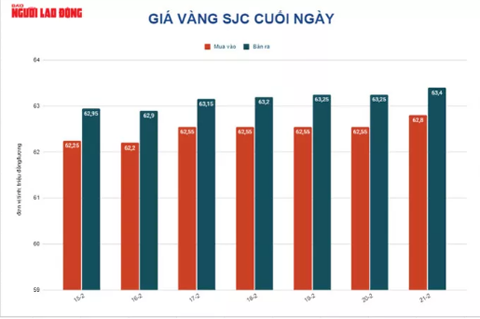 Trước đó tại Việt Nam, do sức mua khởi sắc nên giá vàng SJC ngày 21-2 củng cố đà tăng dù giá vàng thế giới tăng giảm thất thường.