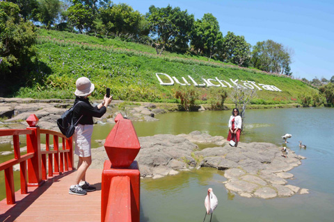 Du khách tham quan, chụp ảnh lưu niệm tại Khu du lịch cộng đồng Kô Tam. Ảnh: Lan Anh
