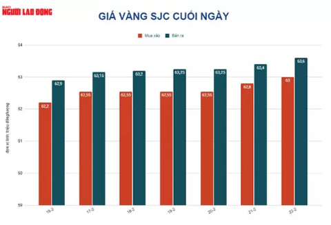 Trước đó, diễn biến của thị trường vàng Việt Nam ngày 22-2 cũng hết sức bất ngờ. Đầu ngày, giá vàng SJC có lúc lao lên mức giá lịch sử 63,85 triệu đồng/lượng. Thế nhưng, do không có người mua nên giới kinh doanh buôc phải giảm mạnh giá vàng SJC 250.000 đồng/lượng, chốt cuối ngày tại 63,6 triệu đồng/lượng. Như thế, giá vàng SJC cao hơn giá vàng thế giới khoảng 11 triệu đồng/lượng.