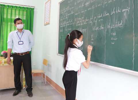 Một tiết học môn Tiếng Êđê của thầy và trò Trường Phổ thông Dân tộc nội trú THCS huyện Cư Kuin.