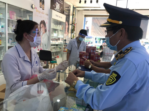 Lực lượng Quản lý thị trường tỉnh Đắk Lắk kiểm tra các nhà thuốc về việc mua bán kit test nhanh Covid-19