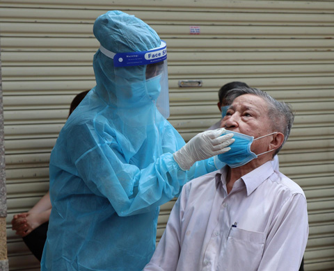 Nhân viên y tế lấy mẫu xét nghiệm SARS-CoV-2 cho người dân TP. Buôn Ma Thuột.
