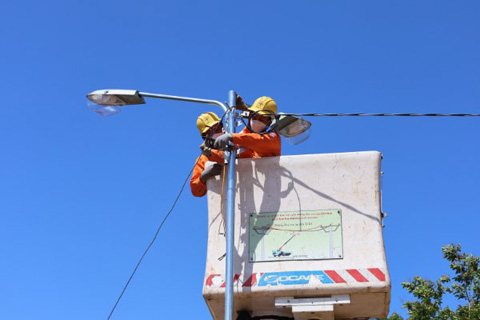 Đoàn viên Chi đoàn Điện lực Cư M’gar thi công đèn đường nội buôn Sút M’drang