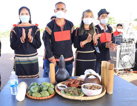 Người dân TP. Buôn Ma Thuột giới thiệu về món ăn truyền thống của dân tộc Êđê. Ảnh: Ánh Ngọc