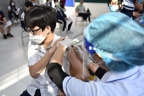 Học sinh trung học Hà Nội tiêm vaccine ngừa Covid-19. Nguồn: HNM.