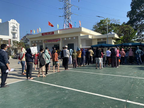 Người dân xếp hàng chờ test Covid-19 để lấy giấy xác nhận sau 7 ngày điều trị tại nhà ở TP Đà Nẵng. (Ảnh chụp sáng 4-3)Ảnh: BÍCH VÂN