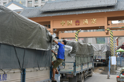 Xe chở nông sản xuất qua Trung Quốc tại cửa khẩu Tân Thanh (Lạng Sơn) Ảnh: Văn Giang