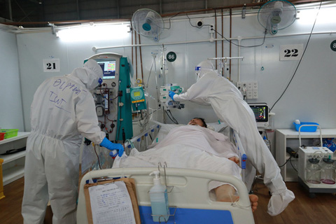 Nhân viên y tế tại Bệnh viện dã chiến điều trị Covid-19 số 16 chăm sóc, điều trị bệnh nhân Covid-19Ảnh: HẢI YẾN