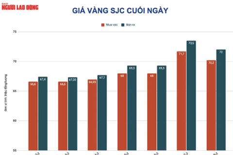 Chốt cuối ngày, giá vàng SJC được Công ty vàng bác đá quý Sài Gòn (SJC) mua vào 70,2 triệu đồng lượng, bán ra 72 triệu đồng/lượng. DOJI mua vào 69 triệu đồng/lượng, bán ra 71,8 triệu đồng/lượng. Bảo Tín Minh Châu (BTMC) mua vào 69,2 triệu đồng/lượng, bán ra 71,8 triệu đồng/lượng. Phú Quý SJC mua vào 69,5 triệu đồng/lượng, bán ra 72 triệu đồng/lượng. PNJ mua vào 70,2 triệu đồng/lượng, bán ra 72,3 triệu đồng/lượng…