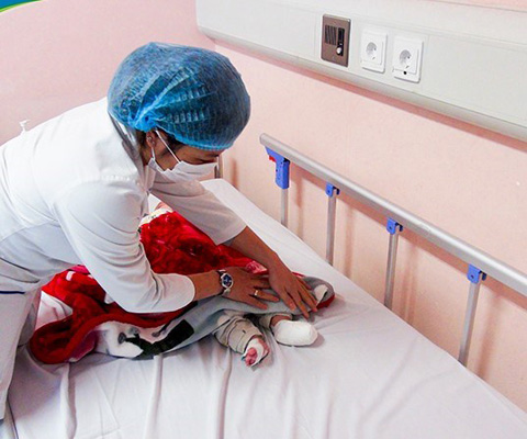Điều trị trẻ bị bỏng do xông hơi. Ảnh: BVCC