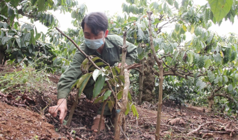 Theo ông Ngọc, gia đình có hơn 4 ha cà phê, trước đây chỉ trồng thuần cà phê từ năm 1996 đến nay vẫn chưa được tái canh. Hiện năng suất chỉ còn đạt 4 tấn/ha, thấp so với những năm trước đây.