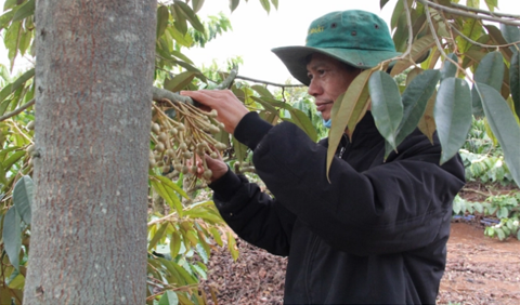 Dẫn phóng viên vào thăm vườn của gia đình, ông Bùi Văn Ngọc (ngụ xã Ea Tân) cho biết, năm nay sầu riêng của gia đình đã bắt đầu ra hoa và cho thu hoạch. Đây là nguồn thu lớn bên cạnh sản lượng cà phê hàng năm gia đình có.