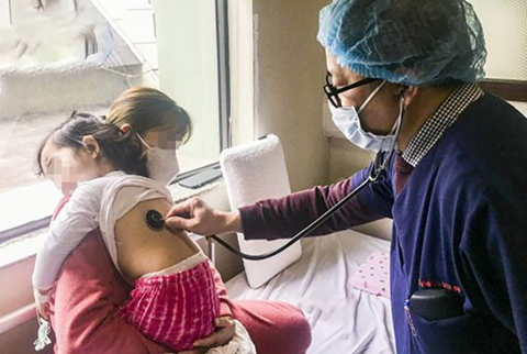 Bác sĩ thăm khám cho một bệnh nhi mắc hội chứng hậu Covid-19 tại Bệnh viện Nhi trung ương.