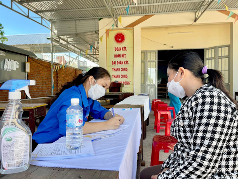 Đoàn viên thanh niên hỗ trợ lấy thông tin về bệnh nhân COVID-19 điều trị tại nhà.