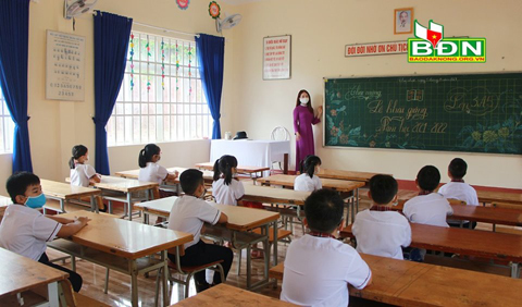 Tương tự, Trường tiểu học Nguyễn Bỉnh Khiêm ở xã Nam Bình (Đắk Song) hiện đã và đang triển khai đúng tiến độ đề ra của chương trình giáo dục phổ thông mới. Cô Đặng Thị Thanh, Hiệu trưởng nhà trường cho biết: “Trường hiện có 819 học sinh ở các khối lớp. Qua triển khai chương trình giáo dục phổ thông mới đối với lớp 1, cán bộ, giáo viên cũng đã cơ bản hiểu sâu hơn về tinh thần, mục đích, ý nghĩa và nắm được những kinh nghiệm nhất định để triển khai cho các khối lớp tiếp theo. Khó khăn lớn nhất của trường là việc thiếu giáo viên. Tuy nhiên, với tinh thần khắc phục khó khăn, trường ưu tiên tập trung bố trí đội ngũ và cơ sở vật chất cho các khối lớp triển khai chương trình mới. Trường cũng đã và đang đề xuất các cấp đầu tư thêm về cơ sở vật chất, đáp ứng nhu cầu sử dụng khi triển khai các khối lớp tiếp theo”.