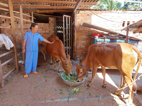 Nhờ nguồn vốn vay từ mô hình, gia đình bà Phạm Thị Cừ đã đầu tư chăn nuôi bò.
