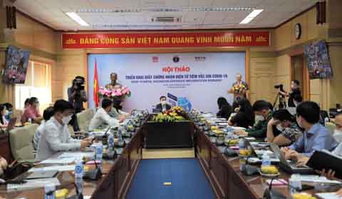 Hội thảo triển khai chứng nhận điện tử tiêm vắc-xin Covid-19. Ảnh: Thùy Giang