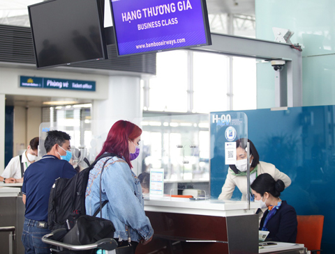 Hành khách làm thủ tục cho chuyến bay QH23 do Bamboo Airways khai thác - Ảnh: Tuấn Linh