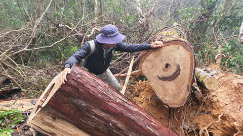Một vụ phá rừng pơ mu quý hiếm trên địa bàn tỉnh Đắk Lắk vào tháng 3-2022 Ảnh: THẾ HÙNG