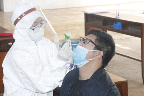 Nhân viên y tế lấy mẫu xét nghiệm SARS-CoV-2 cho người dân.