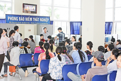 Người lao động nộp hồ sơ Bảo hiểm thất nghiệp tại Trung tâm Dịch vụ việc làm Hà Nội. Ảnh: ANH THƯ