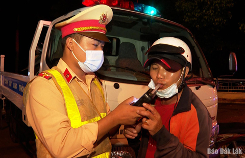 Lực lượng Cảnh sát giao thông kiểm tra nồng độ cồn người điều khiển phương tiện giao thông đường bộ. Ảnh minh hoạ.