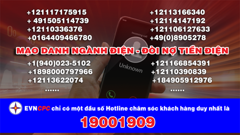 Hình ảnh minh họa: EVNCPC cảnh báo khách hàng về các số điện thoại giả mạo lừa đảo khách hàng