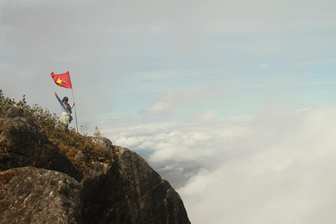 Du khách chinh phục đỉnh Yang Lắk. Ảnh: Y Xim