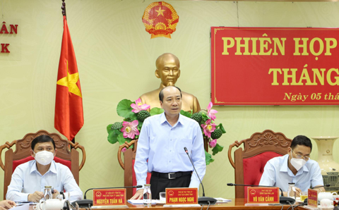 Phát biểu chỉ đạo tại phiên họp, Chủ tịch UBND tỉnh Phạm Ngọc Nghị nhấn mạnh, trong tháng 5/2022 và những tháng tiếp theo, các cấp, các ngành, địa phương cần tập trung thực hiện linh hoạt, hiệu quả những nhiệm vụ, giải pháp vừa phòng, chống dịch COVID-19, vừa phục hồi, phát triển kinh tế - xã hội; hoàn thiện hồ sơ Nghị quyết thí điểm cơ chế, chính sách đặc thù xây dựng và phát triển TP.Buôn Ma Thuột để trình Chính phủ, Quốc hội xem xét thông qua tại kỳ họp tháng 5/2022; đẩy nhanh tiến độ lập Quy hoạch tỉnh Đắk Lắk thời kỳ 2021 - 2030, tầm nhìn đến năm 2050; hoàn thành quy hoạch sử dụng đất các huyện, thị xã, thành phố thời kỳ 2021 - 2030 trình UBND tỉnh phê duyệt; đăng ký và chuẩn bị nội dung trình kỳ họp sắp tới của HĐND tỉnh…
