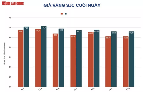 Trước đó, do giá vàng thế giới từ 9 giờ đến 17 giờ ngày 17-5 biến động không nhiều cộng với sức mua trong nước rất yếu, nên trong khoảng thời gian này giá vàng SJC gần như bất động tại 69,25 triệu đồng/lượng.