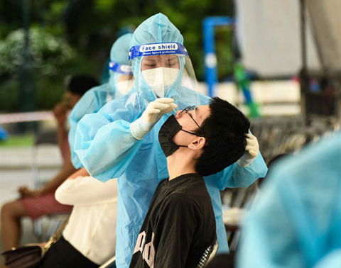 Lấy mẫu xét nghiệm Covid-19 cho người dân Ảnh: NGỌC DUNG