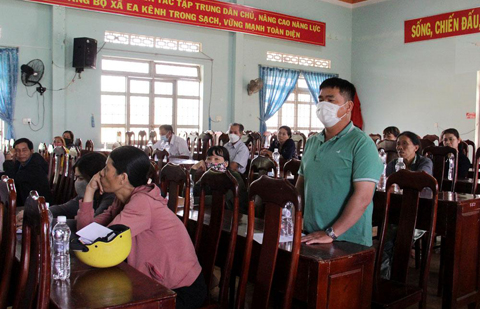 Nông dân xã Ea Kênh nêu những băn khoăn về sản xuất sầu riêng tại buổi hội thảo.
