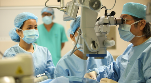 GS - BS Donald Tan (bên phải) đang thực hiện ghép giác mạc cho bệnh nhân tại Bệnh viện FV. Ảnh: BVCC