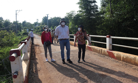 Đoàn công tác Ngân hàng Thế giới kiểm tra thực tế công trình cầu thôn 86, xã Ea Tiêu, huyện Cư Kuin.