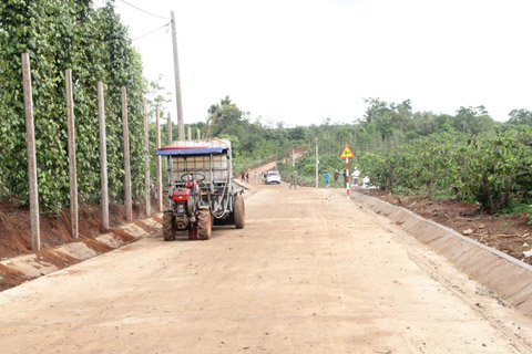 Tuyến đường giao thông liên vùng sản xuất cà phê được nâng cấp khang trang ở buôn Ea Wi, xã Ea Yông (huyện Krông Pắc)