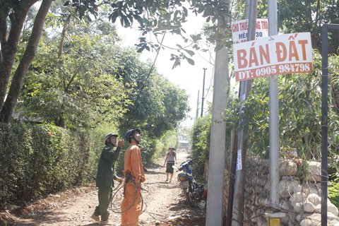 Nhiều bảng rao bán đất trên đường Y Moal (phường Tân Lợi, TP. Buôn Ma Thuột). Ảnh: Lê Thành
