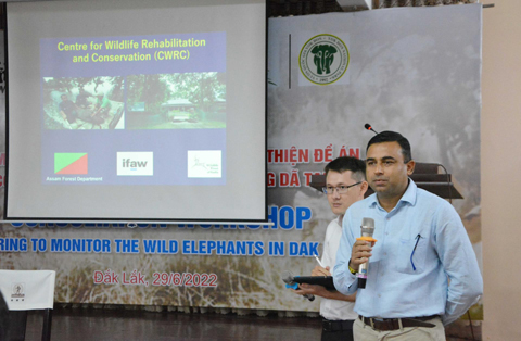Tiến Sỹ Bhaskar Choudhury, Chuyên gia bảo tồn voi, Ấn Độ phát biểu ý kiến tại hội thảo.