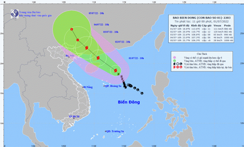 Theo Trung tâm Dự báo Khí tượng thủy văn quốc gia, hồi 10 giờ ngày 1/7, vị trí tâm bão số 1 (bão CHABA) ở vào khoảng 18,8 độ Vĩ Bắc; 113,6 độ Kinh Đông, cách đảo Hải Nam (Trung Quốc) khoảng 400km về phía Đông Đông Nam. Sức gió mạnh nhất vùng gần tâm bão mạnh cấp 11 (103-117km/giờ), giật cấp 14. Bán kính gió mạnh cấp 6, giật cấp 8 khoảng 150km tính từ tâm bão.