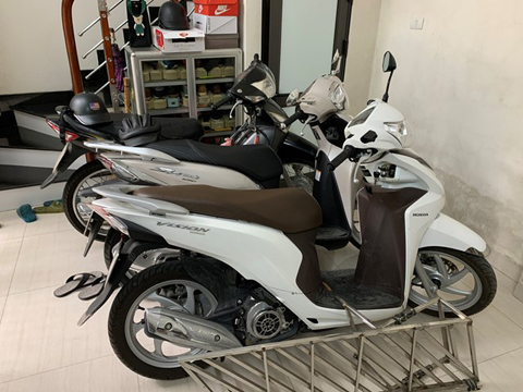 Xe máy - phương tiện di chuyển chính của gia đình ông Khánh giờ phải cất gọn vì giá xăng tăng.