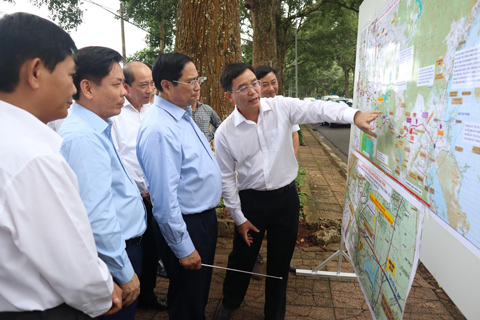 Thủ tướng Chính phủ Phạm Minh Chính khảo sát hướng tuyến cao tốc Khánh Hòa - Buôn Ma Thuột nhân chuyến làm việc tại tỉnh Đắk Lắk vào đầu tháng 7/2022.