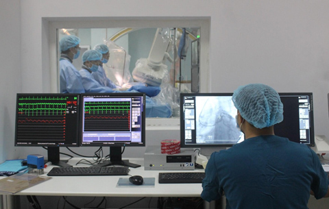Đứng trước nguy cơ sinh tử, để tiết kiệm thời gian, gia đình bệnh nhân H. đã liên lạc với một bệnh viện tư trên địa bàn có thực hiện kỹ thuật đặt stent mạch vành và nhanh chóng đưa người thân đến điều trị. Ngay sau đó, bệnh nhân đã được phẫu thuật đặt stent động mạch liên thất trước để xử lý nhồi máu cơ tim tối cấp.
