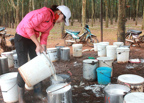 Khai thác mủ cao su tại đơn vị trực thuộc Công ty Cổ phần Cao su Đắk Lắk
