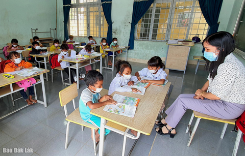 Những học sinh gặp khó khăn trong học tập được giáo viên Trường Tiểu học Yang Mao (xã Yang Mao, huyện Krông Bông) bố trí ngồi bàn trên để tiện việc kèm cặp. (Ảnh minh họa: Tùng Lâm)