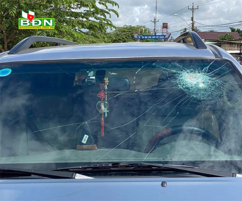 Ngày 4/8, anh K Huy ở xã Quảng Khê (Ðắk Glong) cho biết, khi đang điều khiển xe ô tô đi trên đường tránh Gia Nghĩa thì bất ngờ bị ném đá gây rạn kính chắn gió phía trước.