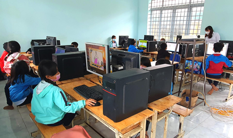 Phòng học tin học với 20 máy tính được 2 nhóm thiện nguyện hỗ trợ từ sự kết nối của cô Thùy.