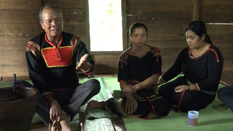 Nghệ nhân Y Wang Hwing buôn Triă, huyện Cư M'gar (bìa trái), người am hiểu và biết trình diễn lời nói vần