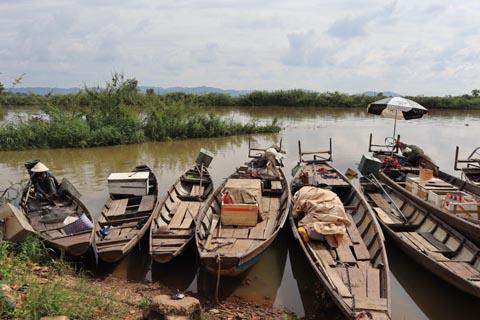 Ghe của người dân xóm cá đậu bên sông Krông Ana mỗi khi chiều về.